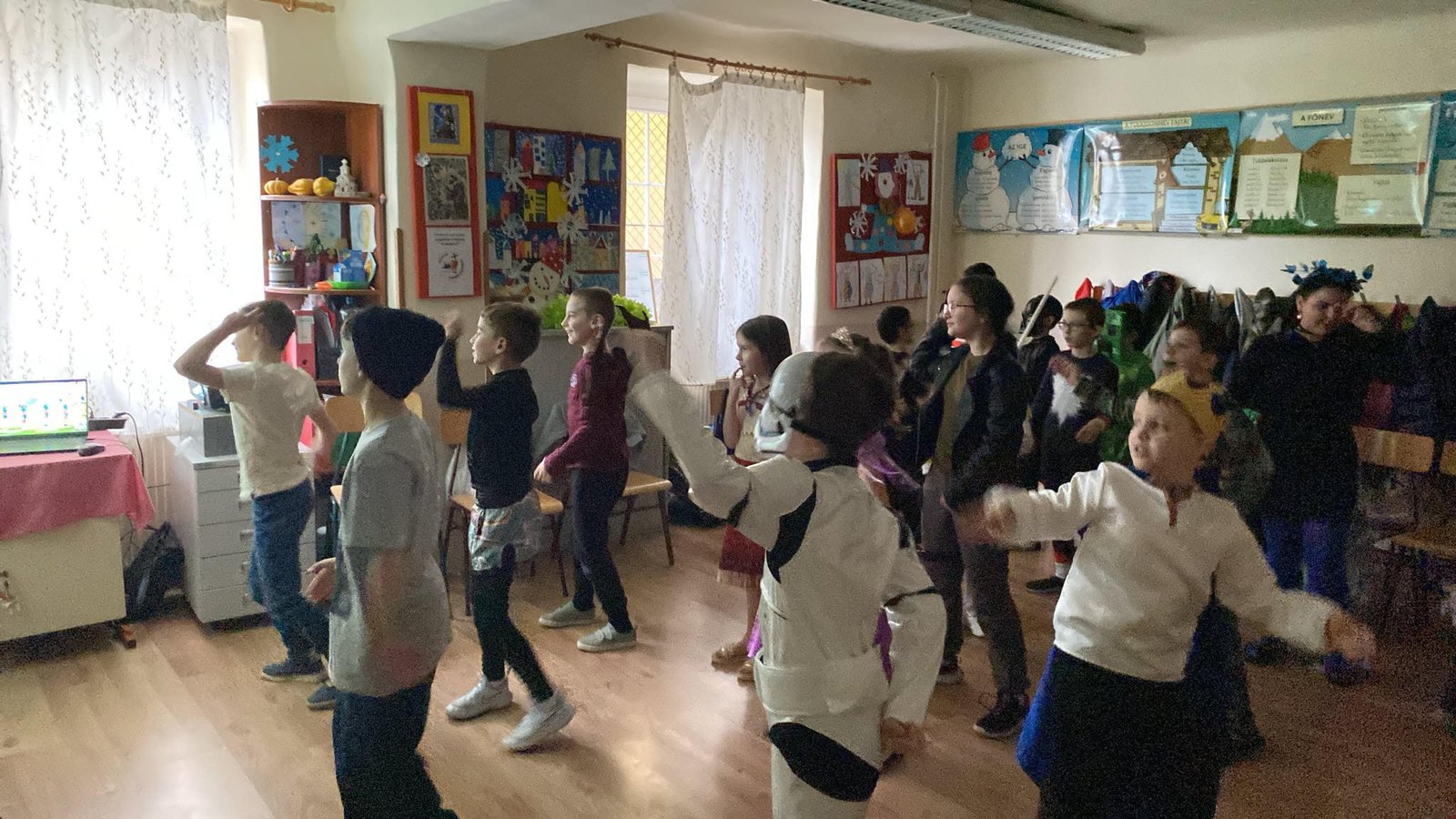 Az alsós gyerekekkel vidám hangulatban farsangoltunk az iskolánk Deák utcai épületében, február 11-én. A tanulók ötletesebbnél ötletesebb jelmezekbe bújtak, voltak hercegnők, szuperhősök és mókás állatfigurák is. A program részeként felelevenítettük a télűző népszokásokat, hogy együtt köszöntsük a közelgő tavaszt. Természetesen nem maradhatott el a finom farsangi fánk sem, amit nagy örömmel fogyasztottak el a gyerekek. A mulatságot közös tánc és izgalmas tombolahúzás tette még emlékezetesebbé. Hálásan köszönjük a szülőknek a sok – sok segítséget és a finomságokat.